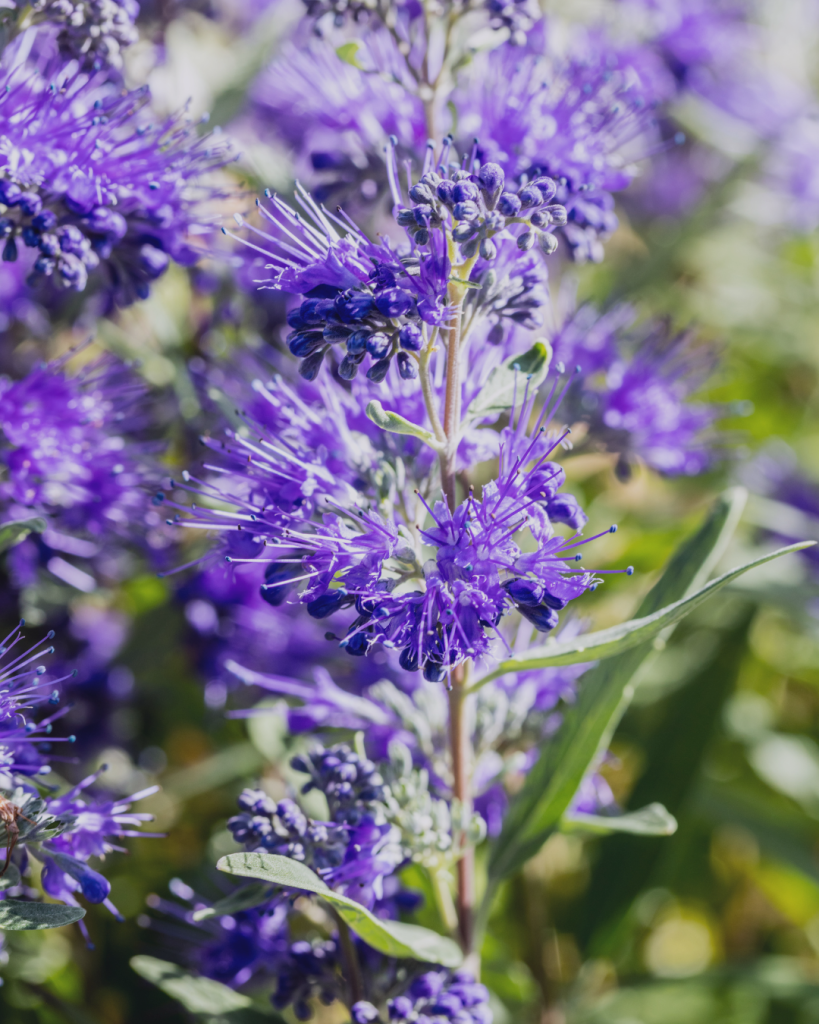 Le Spirée bleue est un petit arbuste très apprécié pour sa floraison d’un bleu intense en fin d’été. Il apporte une touche lumineuse au jardin à une période où peu de plantes sont en fleurs et attire de nombreux pollinisateurs.