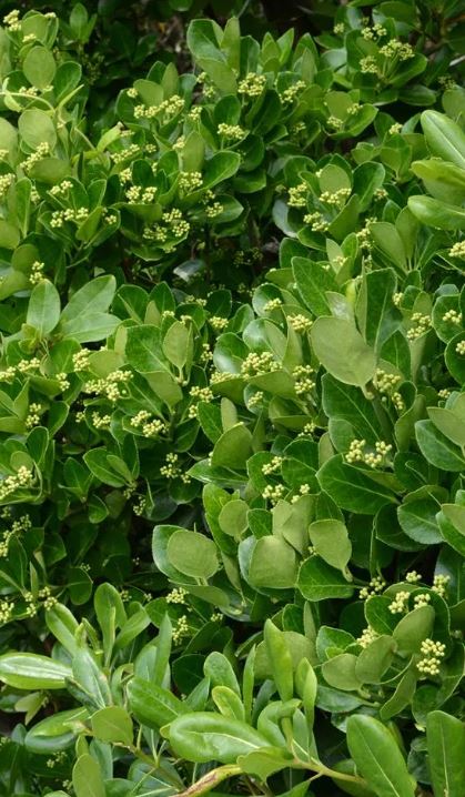- Feuillage : persistant, vert foncé brillant