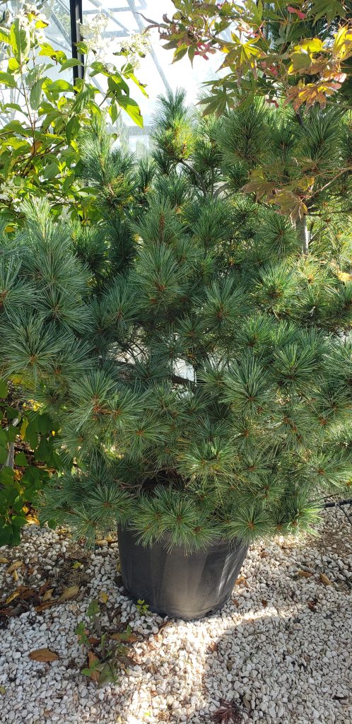 Le Pin de Weymouth est un conifère élégant et souple, apprécié pour ses longues aiguilles fines vert bleuté et son port léger. Il apporte une touche de douceur et de mouvement au jardin, notamment dans les compositions naturelles ou japonisantes.