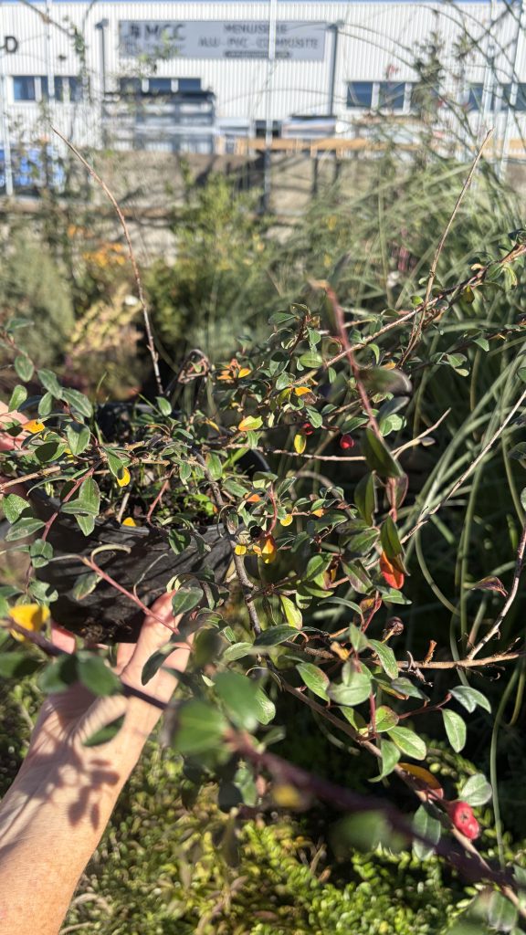 Le Cotoneaster Dammeri est un arbuste couvre-sol persistant idéal pour les bordures, massifs bas ou talus. Il se distingue par son feuillage dense et ses petites baies rouges décoratives en automne et en hiver.