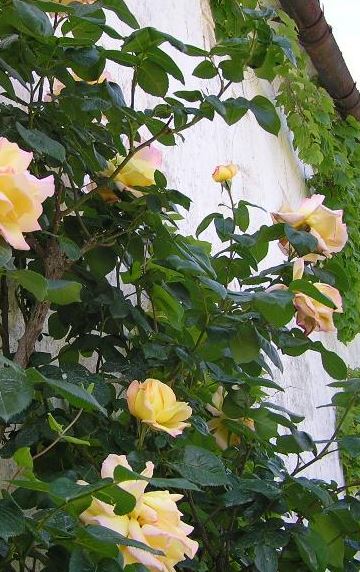 - Fleurs : grandes, jaunes nuancées de rose, parfumées