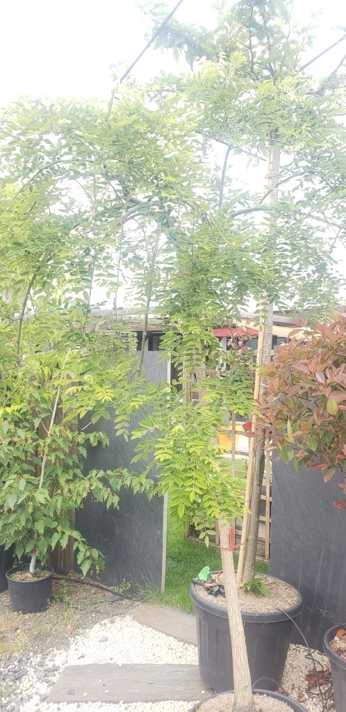 - Feuillage : caduc, vert tendre, composé de nombreuses petites folioles